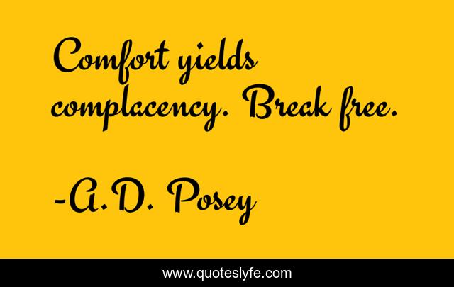"A.D. Posey Quotes." Quoteslyfe.com, 2025. Sat. 06 Dec. 2025. <https://www.quoteslyfe.com/quote/Comfort-yields-complacency-Break-free-55213>.