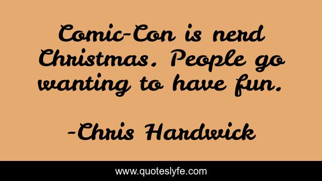 This page presents the quote "Comic-Con is nerd Christmas. People go wanting to have fun.". Author of this quote is Chris Hardwick. This quote is about fun, have fun, people,.