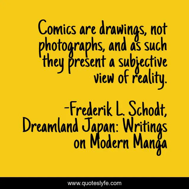 "Frederik L. Schodt, Dreamland Japan: Writings on Modern Manga Quotes." Quoteslyfe.com, 2025. Sun. 07 Dec. 2025. <https://www.quoteslyfe.com/quote/Comics-are-drawings-not-photographs-and-as-161265>.