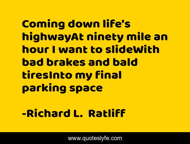 "Richard L. Ratliff Quotes." Quoteslyfe.com, 2025. Mon. 08 Dec. 2025. <https://www.quoteslyfe.com/quote/Coming-down-life-s-highwayAt-ninety-mile-13382>.