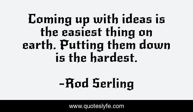 This page presents the quote "Coming up with ideas is the easiest thing on earth. Putting them down is the hardest.". Author of this quote is Rod Serling. This quote is about writing-life, ideas, writing,.