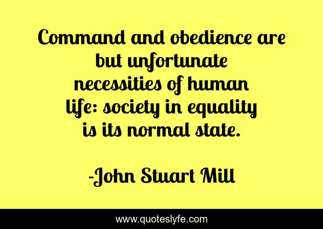 This page presents the quote "Command and obedience are but unfortunate necessities of human life: society in equality is its normal state.". Author of this quote is John Stuart Mill. This quote is about equality, power,.