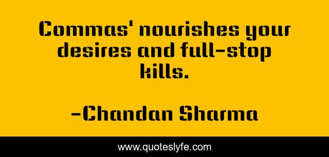 "Chandan Sharma Quotes." Quoteslyfe.com, 2025. Sat. 06 Dec. 2025. <https://www.quoteslyfe.com/quote/Commas-nourishes-your-desires-and-full-stop-90980>.