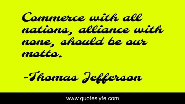 This page presents the quote "Commerce with all nations, alliance with none, should be our motto.". Author of this quote is Thomas Jefferson. This quote is about policy, government,.