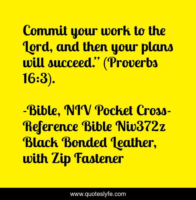 This page presents the quote "Commit your work to the Lord, and then your plans will succeed.” (Proverbs 16:3).". Author of this quote is Bible, NIV Pocket Cross-Reference Bible Niv372z Black Bonded Leather, with Zip Fastener. .