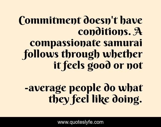 This page presents the quote "Commitment doesn't have conditions. A compassionate samurai follows through whether it feels good or not". Author of this quote is average people do what they feel like doing.. This quote is about brian klemmer, the compassionate samurai: being extraordinary in an ordinary world,.