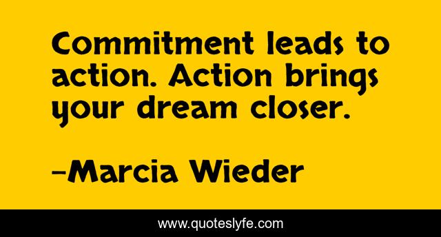 This page presents the quote "Commitment leads to action. Action brings your dream closer.". Author of this quote is Marcia Wieder. This quote is about going, getting,.