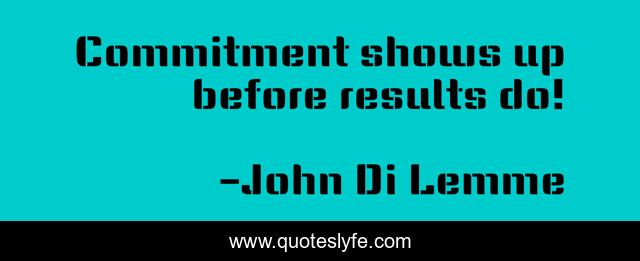 This page presents the quote "Commitment shows up before results do!". Author of this quote is John Di Lemme. This quote is about confidence, success, business, marketing, small-business, motivational, entrepreneurship, john-di-lemme, optimistic,.