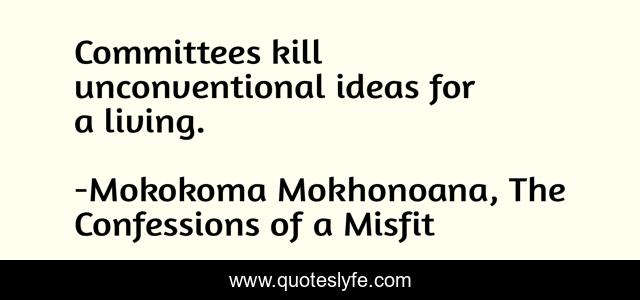 "Mokokoma Mokhonoana, The Confessions of a Misfit Quotes." Quoteslyfe.com, 2025. Mon. 08 Dec. 2025. <https://www.quoteslyfe.com/quote/Committees-kill-unconventional-ideas-for-a-living-205327>.