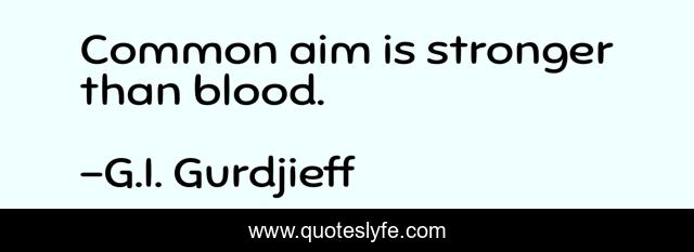 This page presents the quote "Common aim is stronger than blood.". Author of this quote is G.I. Gurdjieff. This quote is about aim, goal, goals-in-life, goals,.
