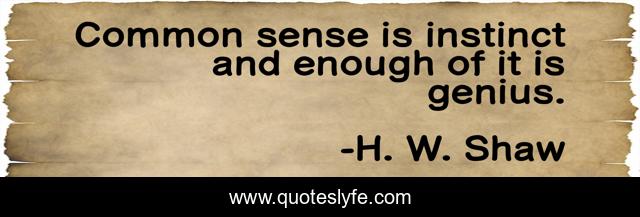 "H. W. Shaw Quotes." Quoteslyfe.com, 2025. Sat. 06 Dec. 2025. <https://www.quoteslyfe.com/quote/Common-sense-is-instinct-and-enough-of-261884>.