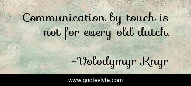 "Volodymyr Knyr Quotes." Quoteslyfe.com, 2025. Sat. 06 Dec. 2025. <https://www.quoteslyfe.com/quote/Communication-by-touch-is-not-for-every-177342>.