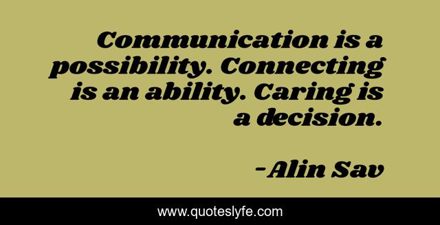 This page presents the quote "Communication is a possibility. Connecting is an ability. Caring is a decision.". Author of this quote is Alin Sav. .