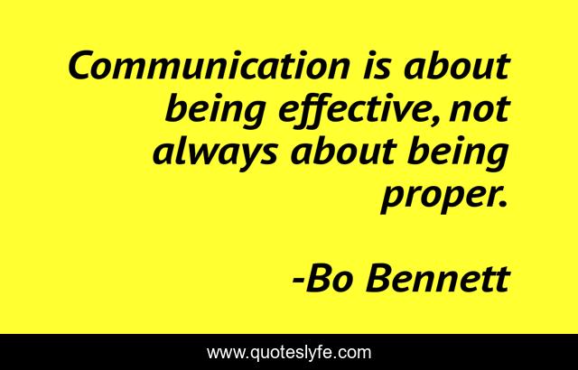 This page presents the quote "Communication is about being effective, not always about being proper.". Author of this quote is Bo Bennett. This quote is about being, always, effective,.