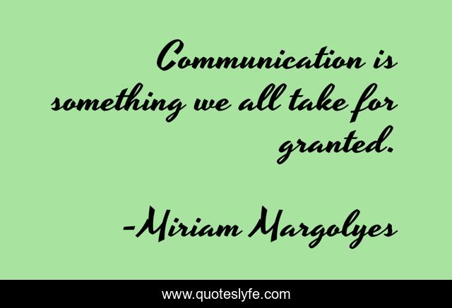 This page presents the quote "Communication is something we all take for granted.". Author of this quote is Miriam Margolyes. This quote is about take for granted, take,.