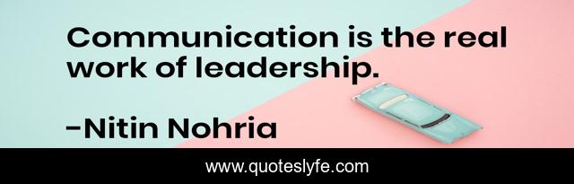 This page presents the quote "Communication is the real work of leadership.". Author of this quote is Nitin Nohria. This quote is about communication, leadership,.