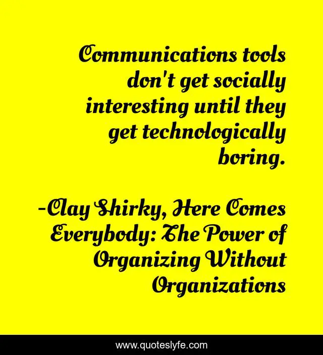 "Clay Shirky, Here Comes Everybody: The Power of Organizing Without Organizations Quotes." Quoteslyfe.com, 2025. Sat. 06 Dec. 2025. <https://www.quoteslyfe.com/quote/Communications-tools-don-t-get-socially-interesting-185211>.