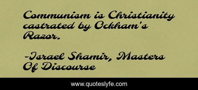 "Israel Shamir, Masters Of Discourse Quotes." Quoteslyfe.com, 2025. Sat. 06 Dec. 2025. <https://www.quoteslyfe.com/quote/Communism-is-Christianity-castrated-by-Ockham-s-239046>.