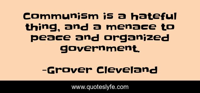 This page presents the quote "Communism is a hateful thing, and a menace to peace and organized government.". Author of this quote is Grover Cleveland. This quote is about communism, organized, peace,.