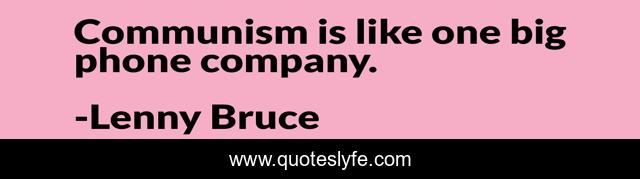"Lenny Bruce Quotes." Quoteslyfe.com, 2025. Sat. 06 Dec. 2025. <https://www.quoteslyfe.com/quote/Communism-is-like-one-big-phone-company-317220>.