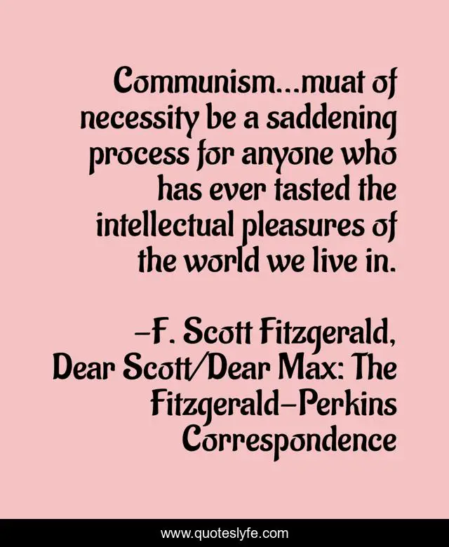 "F. Scott Fitzgerald, Dear Scott/Dear Max: The Fitzgerald-Perkins Correspondence Quotes." Quoteslyfe.com, 2025. Sat. 06 Dec. 2025. <https://www.quoteslyfe.com/quote/Communism-muat-of-necessity-be-a-saddening-57148>.