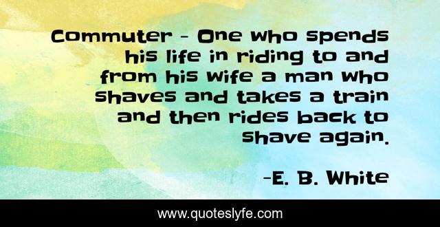 This page presents the quote "Commuter - One who spends his life in riding to and from his wife a man who shaves and takes a train and then rides back to shave again.". Author of this quote is E. B. White. This quote is about men, women,.