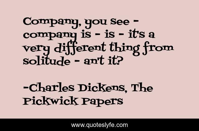 This page presents the quote "Company, you see - company is - is - it's a very different thing from solitude - an't it?". Author of this quote is Charles Dickens, The Pickwick Papers. This quote is about company, solitude, victorian, humour,.