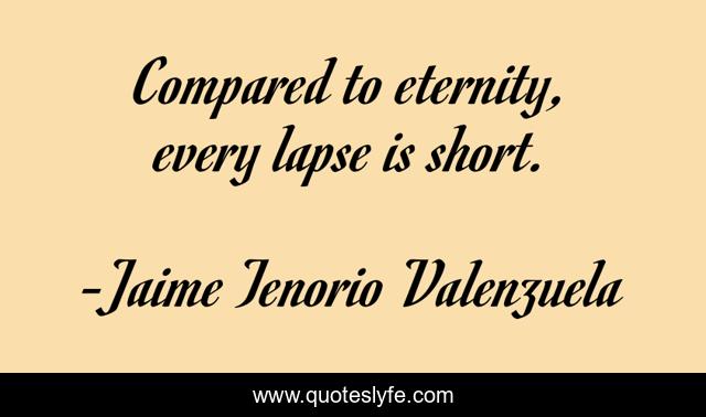 This page presents the quote "Compared to eternity, every lapse is short.". Author of this quote is Jaime Tenorio Valenzuela. This quote is about eternity, short,.