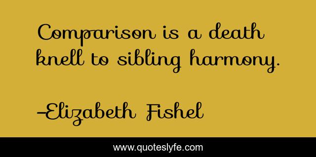 This page presents the quote "Comparison is a death knell to sibling harmony.". Author of this quote is Elizabeth Fishel. This quote is about sibling, harmony, comparison,.