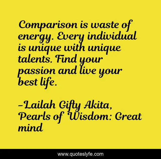 "Lailah Gifty Akita, Pearls of Wisdom: Great mind Quotes." Quoteslyfe.com, 2025. Tue. 09 Dec. 2025. <https://www.quoteslyfe.com/quote/Comparison-is-waste-of-energy-Every-individual-84208>.