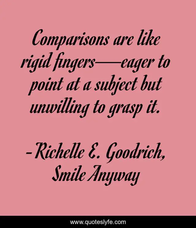 "Richelle E. Goodrich, Smile Anyway Quotes." Quoteslyfe.com, 2025. Fri. 05 Dec. 2025. <https://www.quoteslyfe.com/quote/Comparisons-are-like-rigid-fingers-eager-to-189508>.
