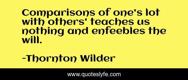 This page presents the quote "Comparisons of one's lot with others' teaches us nothing and enfeebles the will.". Author of this quote is Thornton Wilder. .