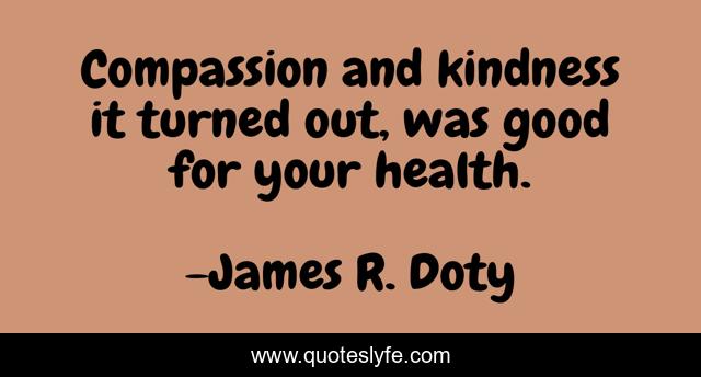 This page presents the quote "Compassion and kindness it turned out, was good for your health.". Author of this quote is James R. Doty. This quote is about compassion, science,.