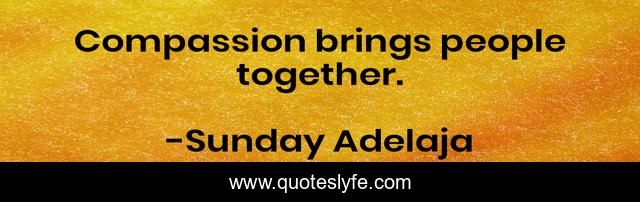 This page presents the quote "Compassion brings people together.". Author of this quote is Sunday Adelaja. .