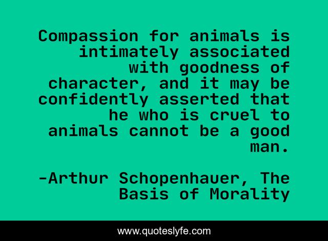 "Arthur Schopenhauer, The Basis of Morality Quotes." Quoteslyfe.com, 2025. Fri. 05 Dec. 2025. <https://www.quoteslyfe.com/quote/Compassion-for-animals-is-intimately-associated-with-207242>.
