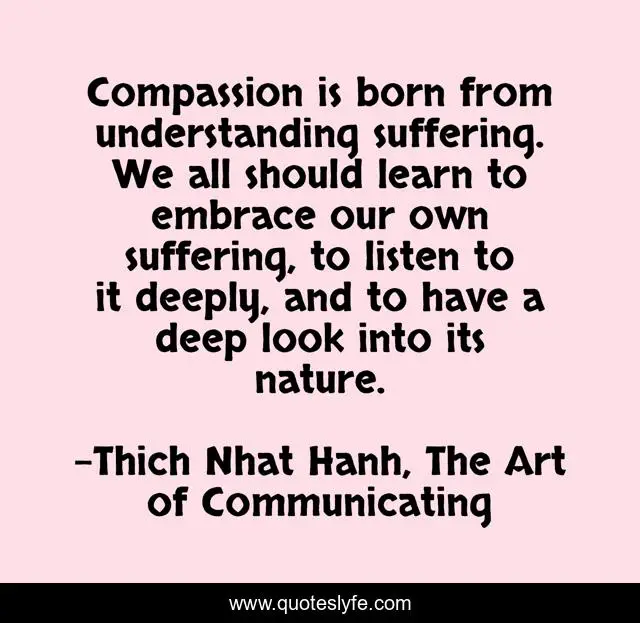 "Thich Nhat Hanh, The Art of Communicating Quotes." Quoteslyfe.com, 2025. Fri. 05 Dec. 2025. <https://www.quoteslyfe.com/quote/Compassion-is-born-from-understanding-suffering-We-135113>.