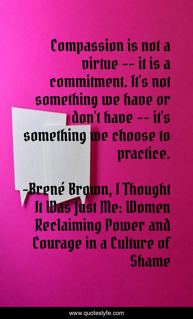 "Brené Brown, I Thought It Was Just Me: Women Reclaiming Power and Courage in a Culture of Shame Quotes." Quoteslyfe.com, 2025. Fri. 05 Dec. 2025. <https://www.quoteslyfe.com/quote/Compassion-is-not-a-virtue-it-is-135464>.