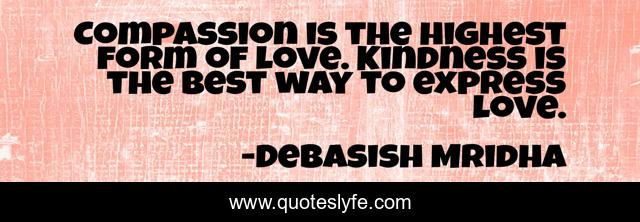 "Debasish Mridha Quotes." Quoteslyfe.com, 2025. Sat. 06 Dec. 2025. <https://www.quoteslyfe.com/quote/Compassion-is-the-highest-form-of-love-73908>.