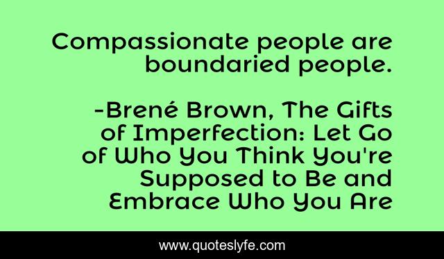 "Brené Brown, The Gifts of Imperfection: Let Go of Who You Think You're Supposed to Be and Embrace Who You Are Quotes." Quoteslyfe.com, 2025. Sat. 06 Dec. 2025. <https://www.quoteslyfe.com/quote/Compassionate-people-are-boundaried-people-77769>.