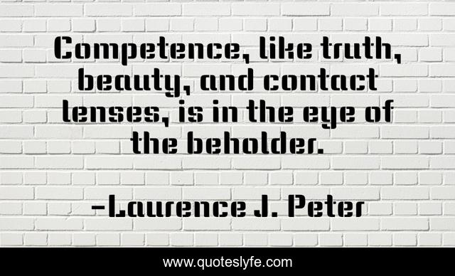 This page presents the quote "Competence, like truth, beauty, and contact lenses, is in the eye of the beholder.". Author of this quote is Laurence J. Peter. This quote is about beholder, eye, beauty,.