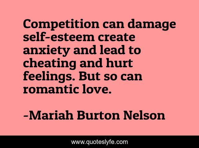 This page presents the quote "Competition can damage self-esteem create anxiety and lead to cheating and hurt feelings. But so can romantic love.". Author of this quote is Mariah Burton Nelson. .