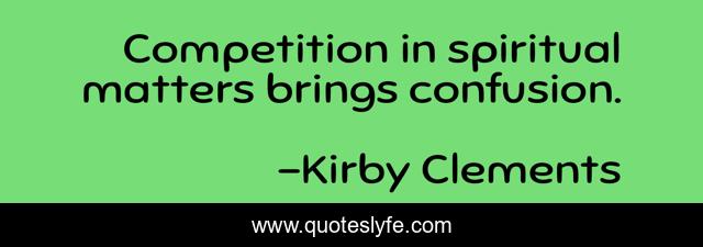 This page presents the quote "Competition in spiritual matters brings confusion.". Author of this quote is Kirby Clements. This quote is about competition, spirituality-religion, church,.
