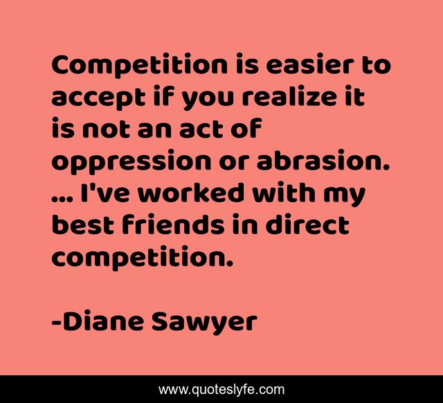 This page presents the quote "Competition is easier to accept if you realize it is not an act of oppression or abrasion. ... I've worked with my best friends in direct competition.". Author of this quote is Diane Sawyer. This quote is about , pressure, diamonds,.