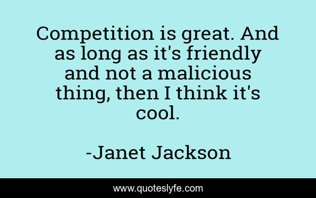 This page presents the quote "Competition is great. And as long as it's friendly and not a malicious thing, then I think it's cool.". Author of this quote is Janet Jackson. This quote is about great, competition, long,.