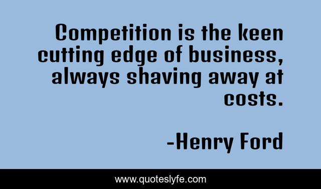This page presents the quote "Competition is the keen cutting edge of business, always shaving away at costs.". Author of this quote is Henry Ford. This quote is about edge, competition, shaving,.