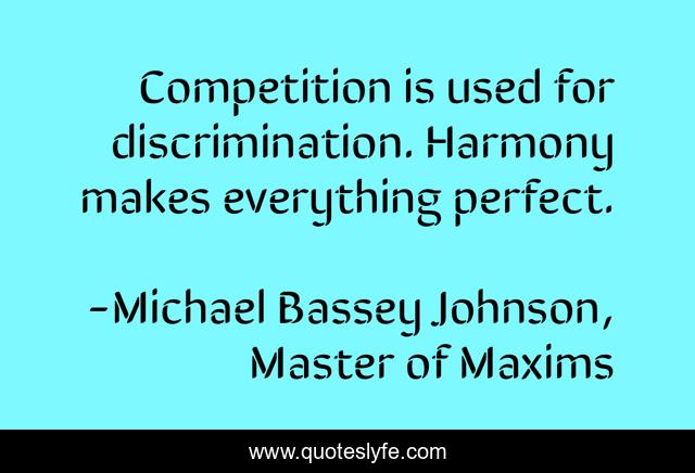 "Michael Bassey Johnson, Master of Maxims Quotes." Quoteslyfe.com, 2025. Sun. 14 Dec. 2025. <https://www.quoteslyfe.com/quote/Competition-is-used-for-discrimination-Harmony-makes-57487>.