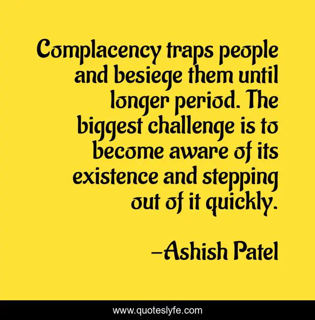 "Ashish Patel Quotes." Quoteslyfe.com, 2025. Sat. 06 Dec. 2025. <https://www.quoteslyfe.com/quote/Complacency-traps-people-and-besiege-them-until-216060>.