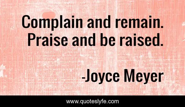 "Joyce Meyer Quotes." Quoteslyfe.com, 2025. Sun. 07 Dec. 2025. <https://www.quoteslyfe.com/quote/Complain-and-remain-Praise-and-be-raised-4434>.