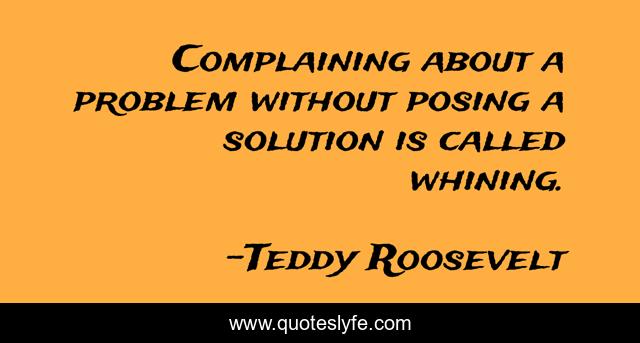 This page presents the quote "Complaining about a problem without posing a solution is called whining.". Author of this quote is Teddy Roosevelt. This quote is about complaining, problem, solution,.