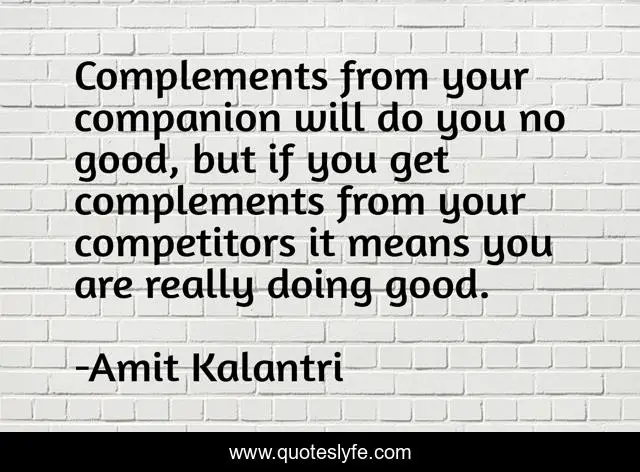 "Amit Kalantri Quotes." Quoteslyfe.com, 2025. Mon. 08 Dec. 2025. <https://www.quoteslyfe.com/quote/Complements-from-your-companion-will-do-you-84324>.
